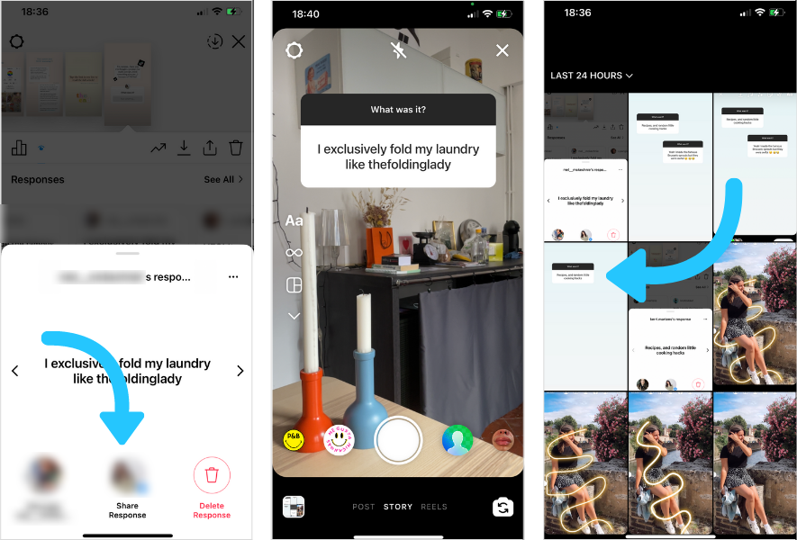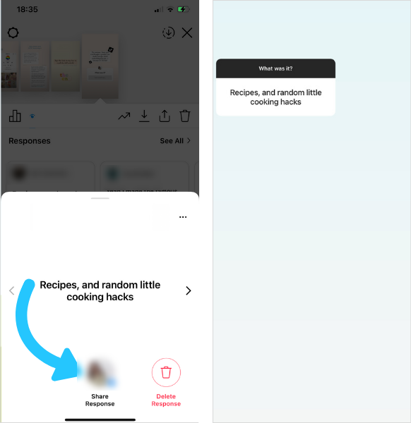 해당 스크린샷을 열고 다른 질문 스티커 응답을 사용하여 두 번째 이야기를 만듭니다.
