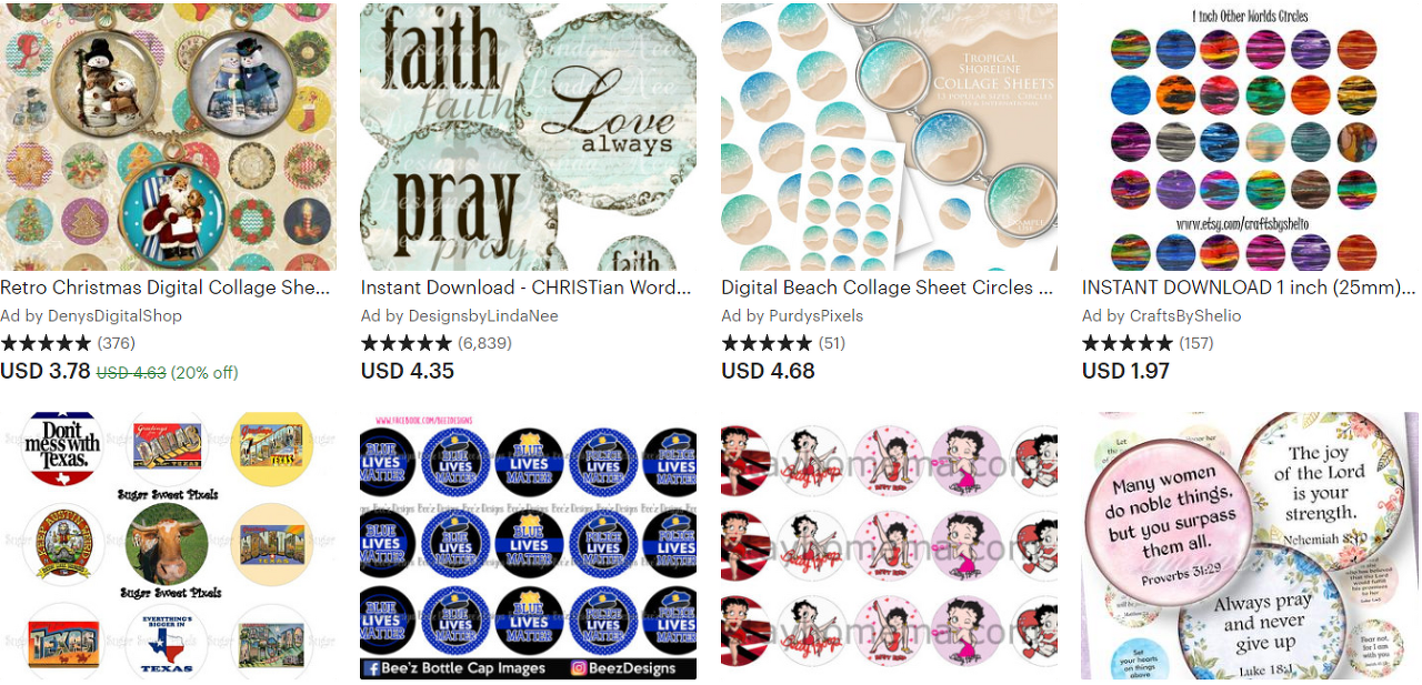 아래 단어로 엣시에서 상품을 검색해보시면, 디지털 제품들이 어떤형식으로 판매되고 있는지 살펴보실 수 있으실겁니다. 디지털제품 아이디어를 얻는 데 활용하세요.