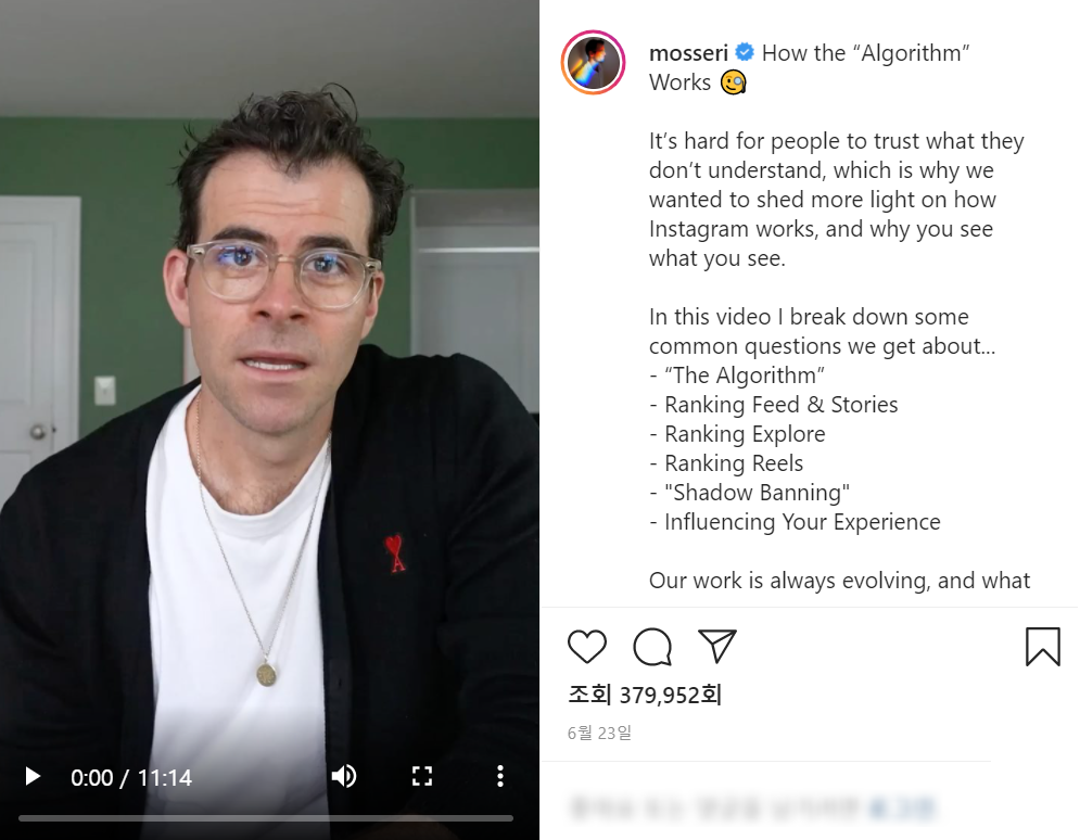 최근 인스타그램 라이브에서 인스타그램 책임자인 Adam Mosseri 는 인스타그램 피드 알고리즘이 어떻게 작동하는지 공유했습니다. 방송 중 Mosseri는 인스타그램 알고리즘이 고려하는 가장 중요한 요소를 다음과같이 공개했습니다.