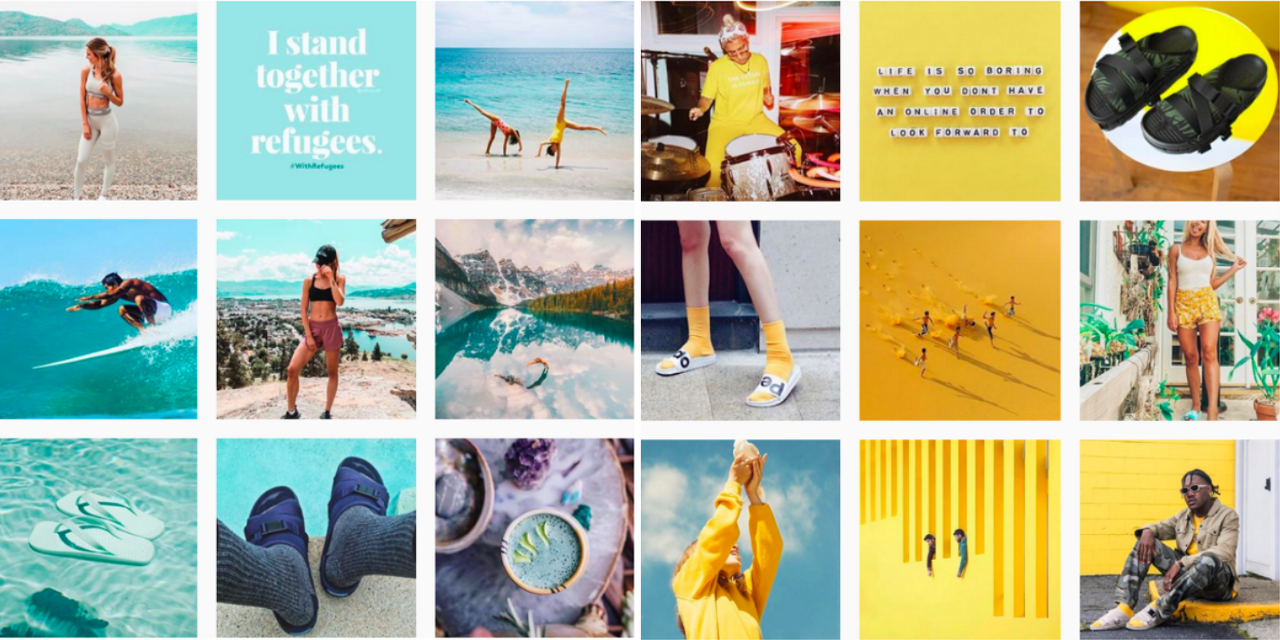 동일한 색상을 이용하여 피드를 구성하는 것은 통일된 컨셉을 얻는 한 가지 방법이 될 수 있습니다. 필터를 사용하여 보다 스타일리시한 브랜드의 고유한 "톤"을 만들어 나가세요. 나의 브랜드에대한 시각적인 성격과 브랜드 성격이 어떤 관계가 있는지 브레인 스토밍을 하셔야합니다. 나의 제품과 어울리는 톤을 만드는 필터를 이용하시면 브랜드의 존재를 특정 모양이나 톤으로 표현할 수 있습니다.