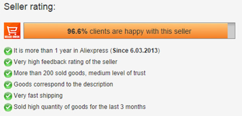 그 중에서 신뢰가는 공급처를 선정하기위해 스토어 평점이 4.8 이상인 스토어를 선정하셔야 합니다. AliExpress Seller Check 라는 Chrome 확장 프로그램은 셀러의 판매 기준, 피드백, 배송기간, 상세페이지 작성, 이미지 등 우리가 온라인 플랫폼을 이용해서 공급처를 선정할 때 체크해야할 모든 사항들을 한 눈에 보기쉽게 정렬해주기때문에 보다 객관적이고 직관적으로 공급처를 선정하기 쉽습니다.
